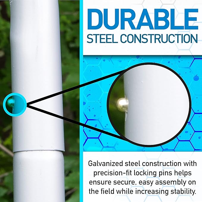 - DURABLE STEEL CONSTRUCTION: Galvanized steel construction with precision-fit locking pins helps ensure secure, easy assembly on the field while increasing stability.