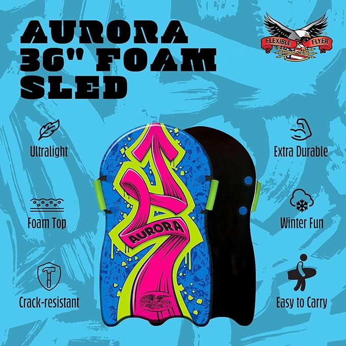 Flexible Flyer Lightweight Foam Slider, Adult and Kids Snow Play Sled with Handles, Winter Toboggan Sled for Ages 5 and Up