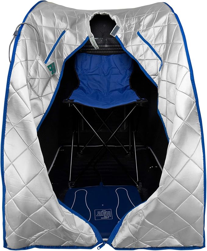 Infrared FAR IR Negative Ion Portable Indoor Personal Spa Sauna by Durherm with Air Ionizer, Heating Foot Pad and Chair, 30 Minutes Timer, Large, Silver