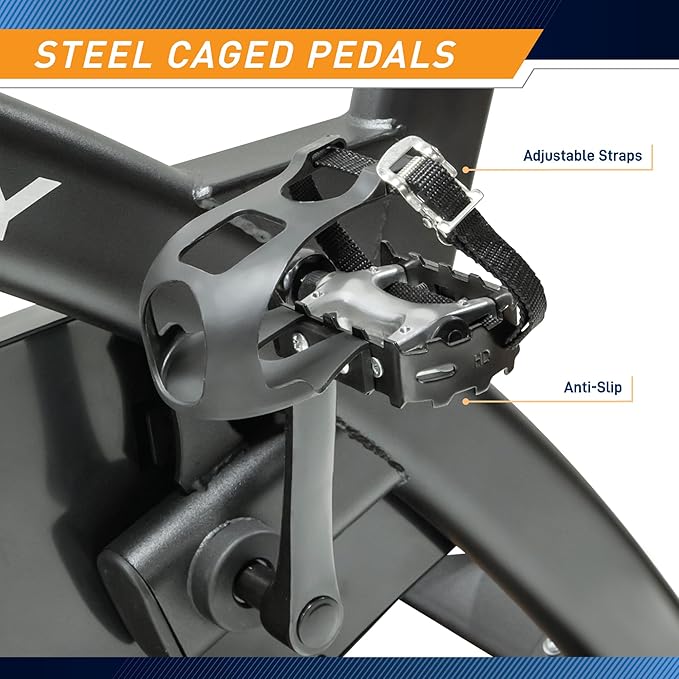 - MANUAL RESISTANCE MECHANISM– The 40-pound flywheel stores rotational energy and provides resistance allowing for manual adjustment of resistance levels to simulate different terrains for customizable workout routines according to different skill levels.