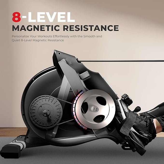 - 【CUSTOMIZABLE RESISTANCE】Achieve personalized intensity with our 8-level magnetic system. Easily adjust the knob for tailored difficulty, catering to all skill levels. Keep your workout impactful and challenging with this customizable feature.