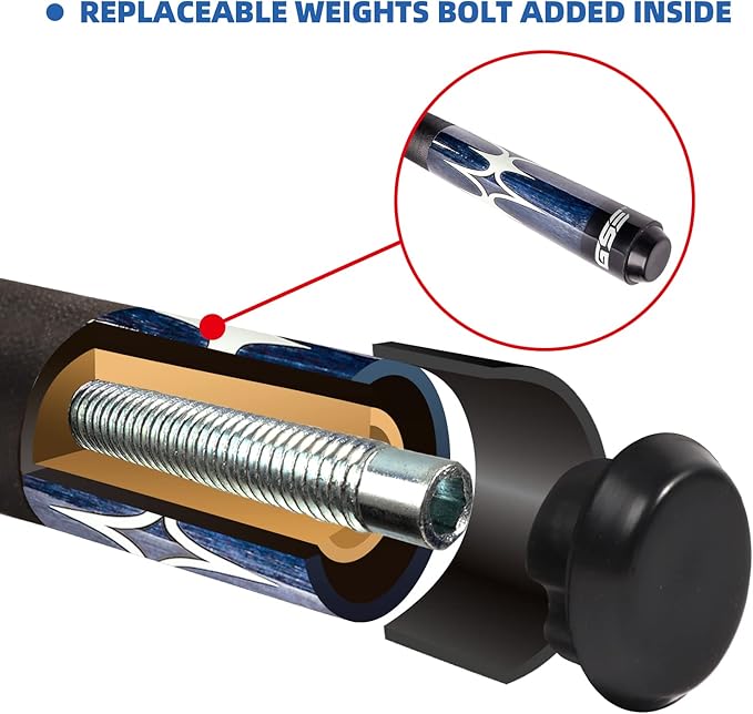 - Quality: The pool cue has many layers of high gloss epoxy paint finish to prevent fading and warping, features a two-piece pool cue stick design for easy transport and storage