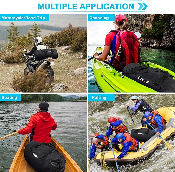 - Multiple uses: With its effective waterproofing, this waterproof dry bag is suitable for a wide range of outdoor activities, such as kayaking, paddleboarding, boating, motorcycle riding, rafting, fishing, diving, and other adventures
