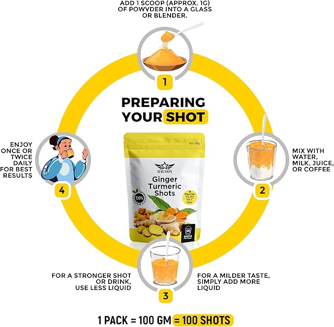 Ginger Turmeric Supplements with Piperine, Orange, Vitamin C, Vitamin D3 & Zinc | Ginger Turmeric Shots for Joint, Heart, Brain, Gut & Skin Health | 100 Servings | Ayurvedic | Powder
