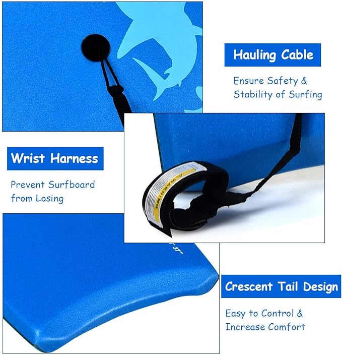 - 【Strong Buoyancy & Light Weight】Strong buoyancy and sturdy construction give our body board a strong load-bearing capacity. It is not easily deformed and faded and can be used for a long time. The light weight makes it easy to carry, so you can take it wherever you go.