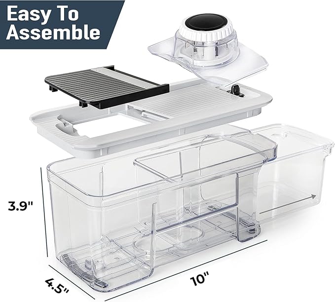- Greatest functionality on the market - 5 interchangeable blades means this cook's tool & gadget set meets all of your slicing, grating and chopping needs. Choose the perfect thickness of your sliced vegetables with the easy-to-use adjuster dial and select the ideal size for your chopped vegetables by simply changing the inserts.