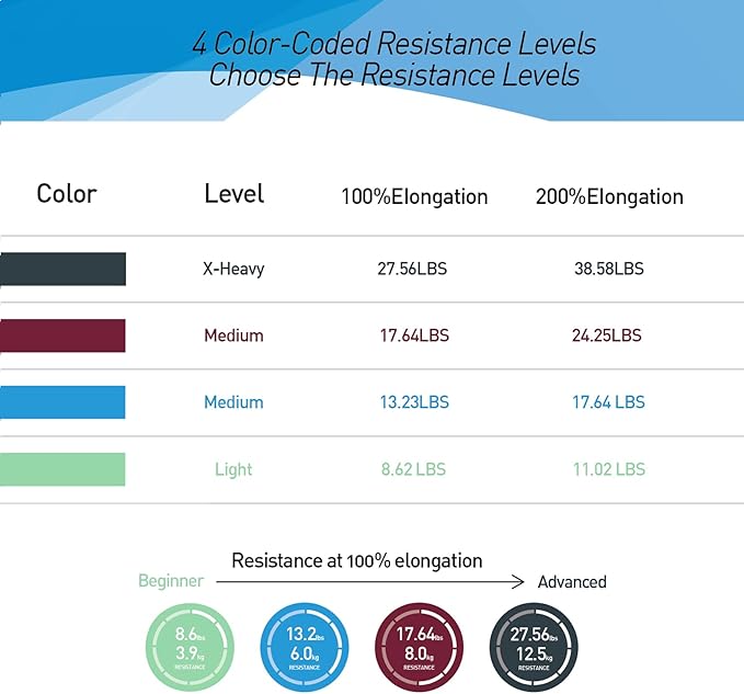 - 【Versatility and Flexibility】 Ideal for Resistance Training, Physical Therapy and Mobility Training, You Can Take a Couple Wraps Around Your Hands for More Tension and a Secure Grip. or Just Tie a Knot, For Use as a Loop Band, and also You Can Double Them Up for Even More Resistance. The Bands are Vibrantly Color-Coded, Once You are Ready for a More Challenging workout, You can Move Up to The Next Color.