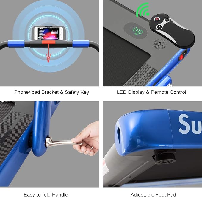 - Spacious Running Belt & LED Display & Phone Bracket: Excellent load-bearing capacity together with the wide and non-slip running area will improve safety during your workout. The LED display helps you clearly see your movement time, speed, distance and calories. Besides, the phone holder allows you to exercise while entertaining.