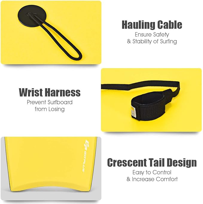 - 【Strong Buoyancy & Light Weight】Strong buoyancy and sturdy construction give our body board a strong load-bearing capacity. It is not easily deformed and faded and can be used for a long time. The light weight makes it easy to carry, so you can take it wherever you go.