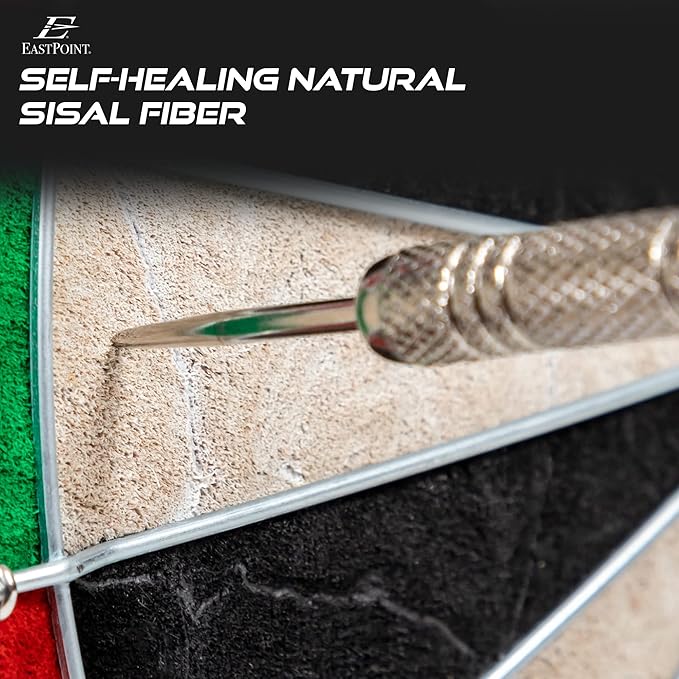 - SELF-HEALING SISAL FIBER - The Derbyshire dartboard is made of high-density, sisal fiber that naturally heals itself, ensuring long-lasting durability for shot after shot without visible holes. Complete with a heavy-duty steel spider frame for durability.