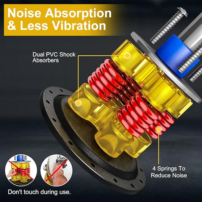 - [UPGRADED SHOCK ABSORBING SYSTEM] Dual TPU noise absorbers + 4 springs achieve 360° shock absorption. TIP: springs can be removed for less vibration to do intensive strength training