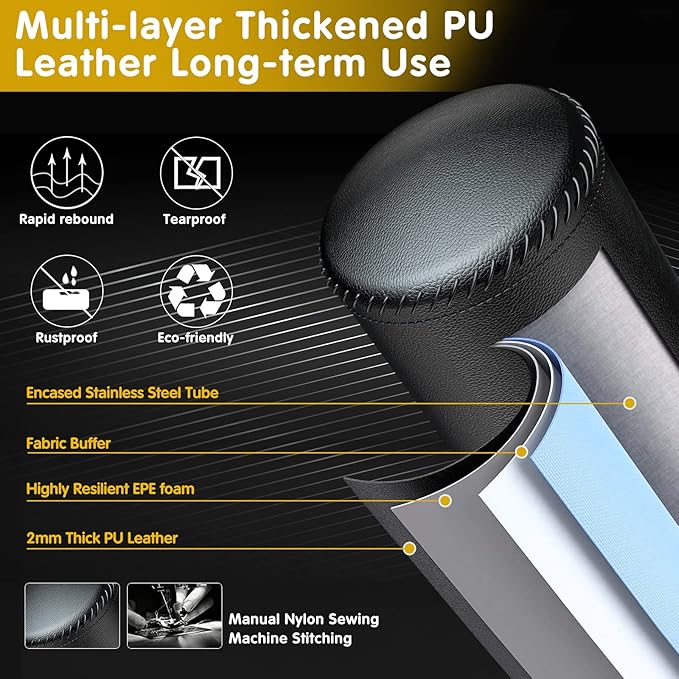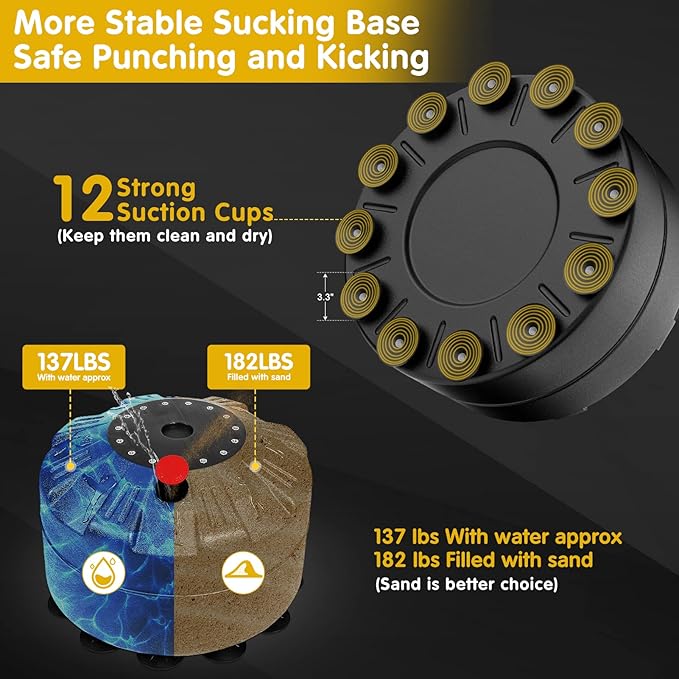 - [PREMIUM MADE] Stainless steel tube stand is encased in multi-layer construction: 2mm thickened PU leather striking surface, high-density EPE foam, eco-friendly fabric buffer. Tear-resistant, rapid rebound, withstand long-term onslaught of kicks and punches