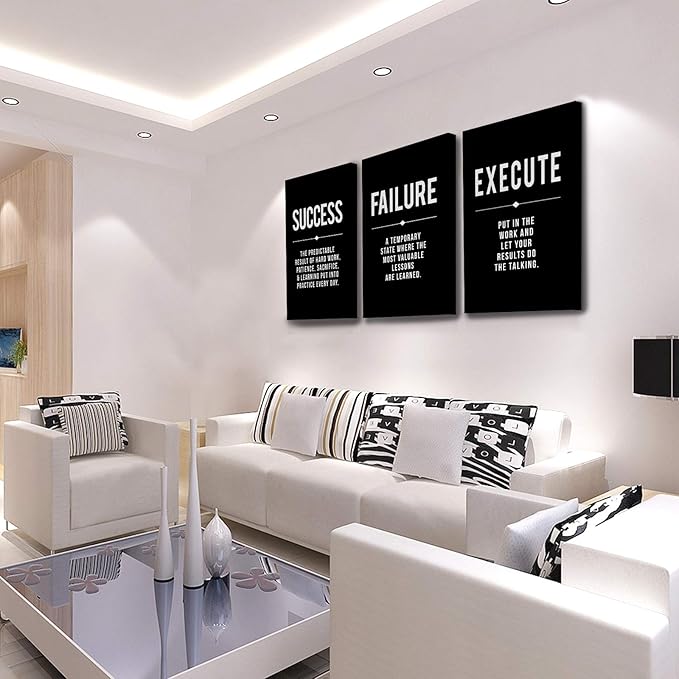 Framed Canvas Wall Art Success Quote, Office Wall Art, Black Large Poster, Positive Motivational Set of 3 Prints, Execute Failure Definition, Inspirational Print (A-3pcs,16x24inchx3pcs)