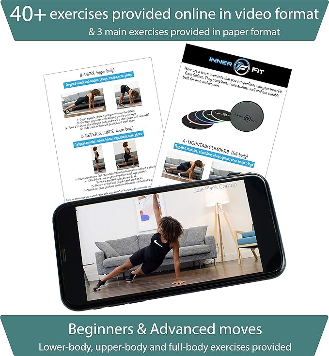 InnerFit Core Sliders for Working Out - Set of 2 Dual Sided Exercise Sliders Fitness Discs - Durable Strength Slides Suitable for Carpets and Hardwood Floors