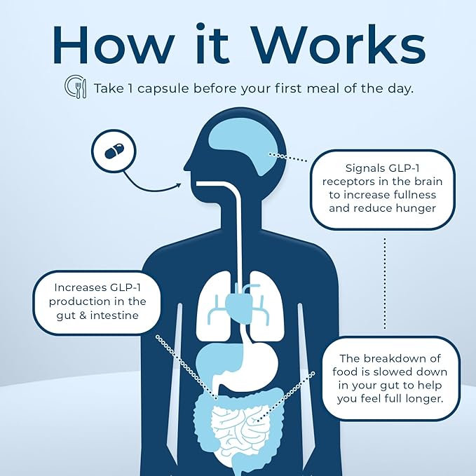 - FEEL FULL LONGER: Increased GLP-1 sends signals to your brain to feel full for longer, reducing hunger & appetite. GLP-1 also slows down the absorption of food in your stomach, helping you stay on track with your diet without feeling hungry.