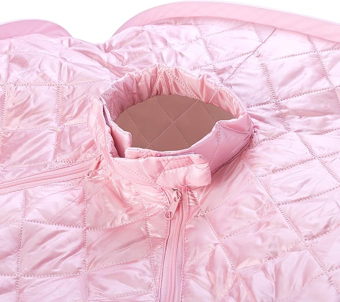 - Durable, Insulated Design: Made with a durable, insulated exterior and zippered enclosure, this steam sauna traps heat efficiently for consistent performance. The light pink design adds a calm, inviting feel to your wellness setup.