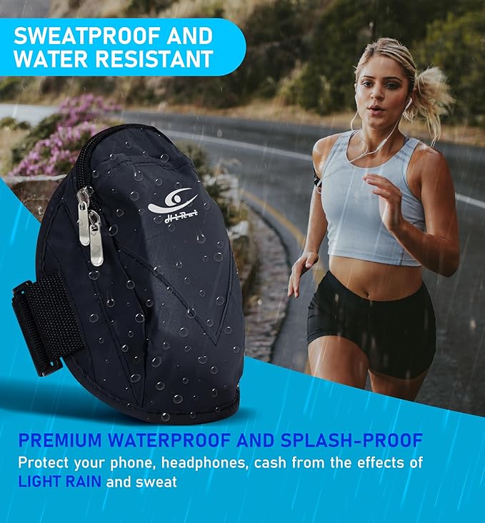 - Premium Waterproof and Sweatproof Material: Crafted with advanced waterproof and sweat-resistant materials, this armband ensures your phone and valuables stay protected from sweat, light rain, and other elements. Whether you're running, cycling, or hiking, you can focus on your workout without worrying about your gear.
