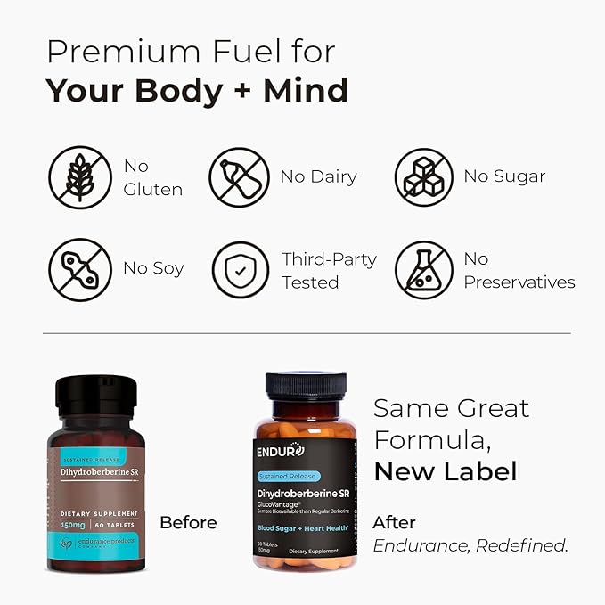 Endur Dihydroberberine SR, Supports Blood Sugar Health & Metabolism, Great for Weight Management Support, Gluten Free, 150mg (60 Tablets)