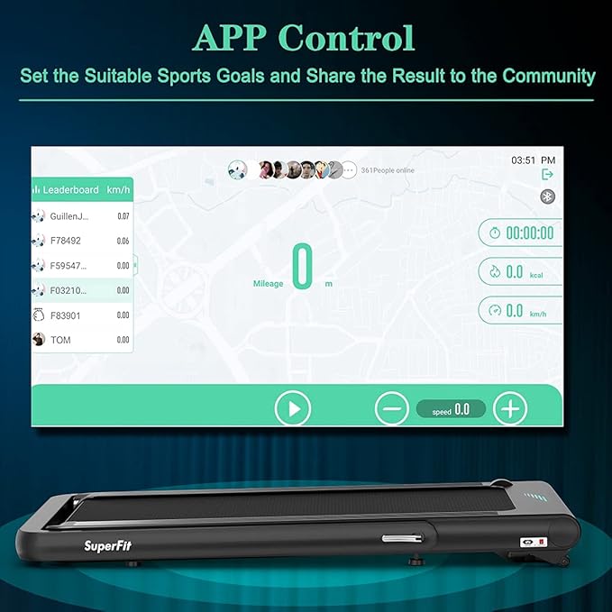 - 𝗦𝗶𝗺𝗽𝗹𝗲 𝗢𝗽𝗲𝗿𝗮𝘁𝗶𝗼𝗻: This under desk treadmill features LED touch screen, offering real-time feedback of calories, pulse, time, distance and speed. The treadmill could also be control and adjust via App and remote. Furthermore, all sports data will be kept when you press the pause key for water break and you can switch speed unit between mile and km in APP.