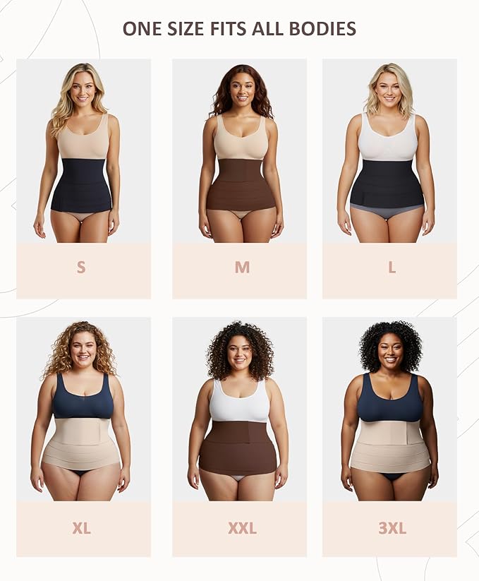 - One Size Fits All: Our waist wrap is designed to accommodate all body types with its one-size-fits-for all size within 23.5 IN-47.5 IN waistline. Measuring 157.2 IN in length and 4.92 IN in width, this bandage wrap offers versatility in snatching your waist, allowing you to adjust the tightness to your preference to your preference for ultimate comfort. Warm tips-Thinner women need to wrap more circles, will appear thick, full-figured women can wrap fewer laps and also have tummy coutrol.