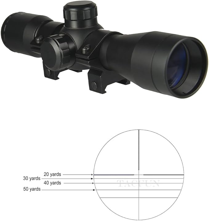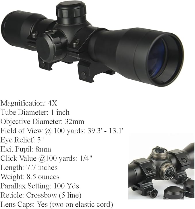 - The scope features 4x magnification with the multi-layer coated lenses, light-transmission up to 93%, that provides maximum brightness, clarity and contrast.