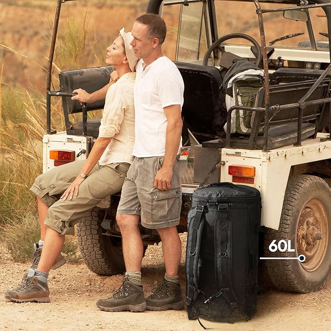 Haimont Duffle Backpack for Men Women, Convertible Travel Duffel Bag Backpack with Shoes Compartment, Heavy Duty Weekender Bags for Sports Gym, Traveling, Camping, Water-resistant, 60L, Black