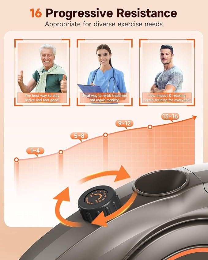 • 16-Level Progressive Resistance: Niceday Recumbent Bike offers 16 levels of progressive resistance, suitable for the diverse exercise needs of the whole family; The mechanical knob allows precise control of resistance changes, ensuring seamless transitions between intensity levels; Ideal for gentle physical therapy and relaxing cardio exercise