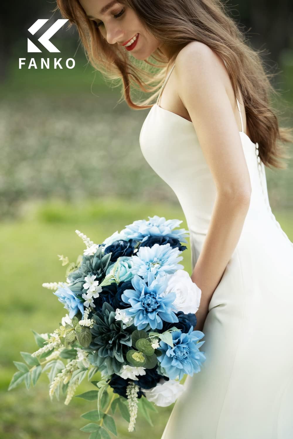 - 【27Pcs in Package】Our artificial flowers combo includes: Dusty Bule Semi-Cactus Dahlia x 1(5.5"), Dusty Sky Bule Semi-Cactus Dahlia x 2(4.5"), Sky Bule Semi-Cactus Dahlia x 2(4"), Navy Bule Rose x 7(3.5"), Light Bule Rose x 3(3.5"), White Rose x 2(3.5"), Little Delphinium x 9(1.25"), Wheat Ears Flowers x 3, Eucalyptus Stems x 2, Nandina Plants x 2. [Notes: Ribbons are not included. Colors may vary slightly due to differences in monitor settings.]