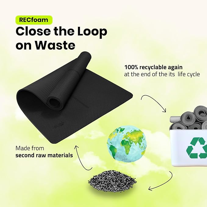 - 【Eco-friendly & Recyclable】Crafted from 100% recyclable premium Recfoam, our large exercise mat is not only durable but also kind to the environment, ensuring no harm to our planet during its lifecycle