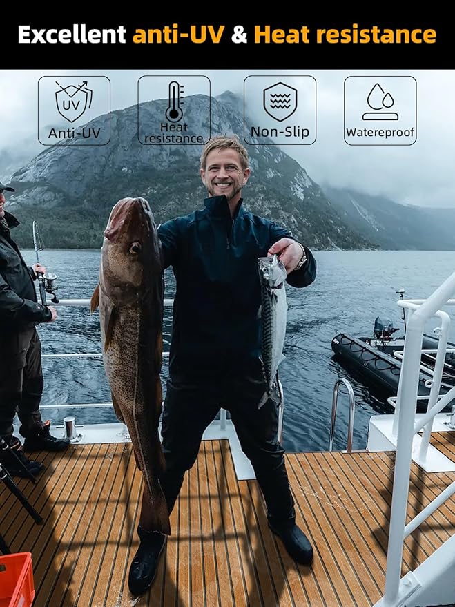 - Wide Application - Very nice faux teak boat flooring, different colorful patterns available. They are perfectly used for Motorboat, Jon Boat, RV Yacht Kayak, Surfboard, Swimming Pool, Garden flooring and other boat decking