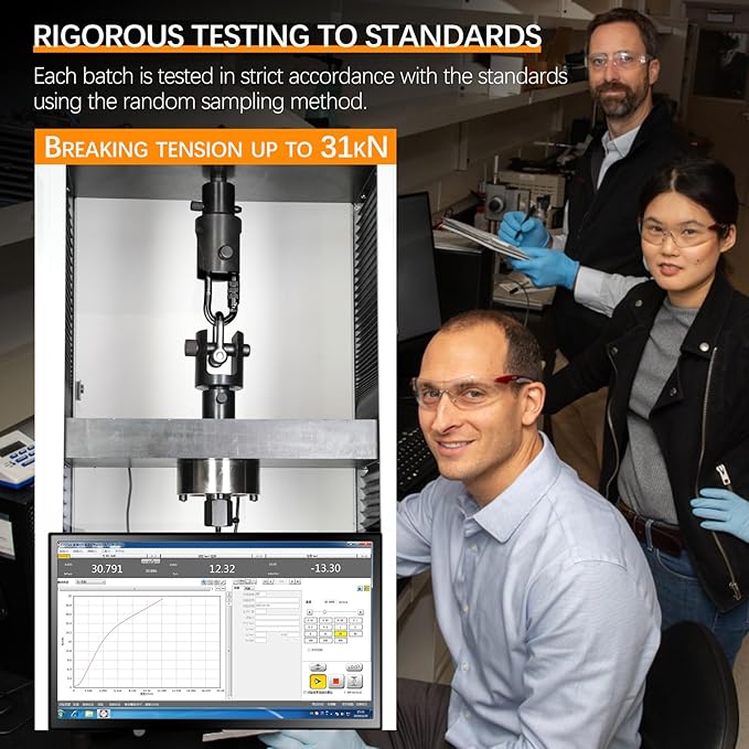 - ☪ Strong But Lightweight Oval Carabiner ✔☪ Major axis: 25KN (about 5500lbs), Minor axis: 8kN, Open gate: 7kN.There is a detailed tensile test in the video, you can see that our product is only broken under the tensile force of 30.55KN (about 6869 lbs).