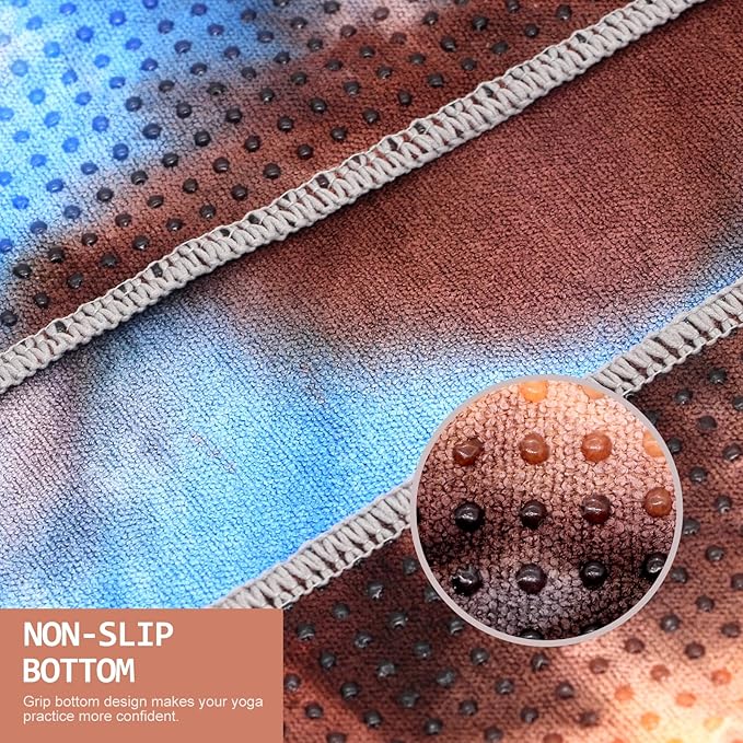 Eunzel Yoga Towel,Hot Yoga Mat Towel with Grip Dots Sweat Absorbent Non-Slip for Hot Yoga, Pilates and Workout 24" x72", Blue & Brown
