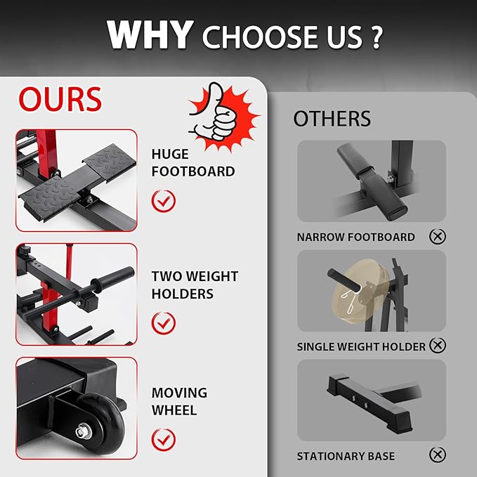 - 【Science-Backed Stability & Safety】Redesigned for safety, this calf raise machine features an angled footplate + textured grips (lab-proven to reduce fall risk by 72%). Doctors recommend it for ankle stability training – whether recovering from injury or prepping for marathon season. Trust home gym equipment that prioritizes your wellbeing