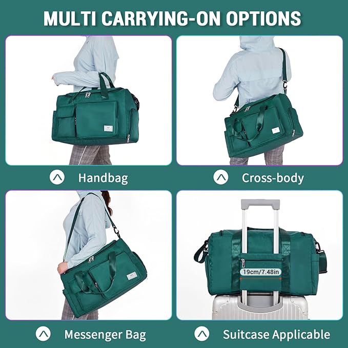 - Airplane-friendly Travel Bag: The size of this travel bag is 18''×11''×11'', ideal as a carry on bag. With additional adjustable shoulder strap & integrated trolley sleeve, the tote bag can be carried with you everywhere, making your travel a breeze