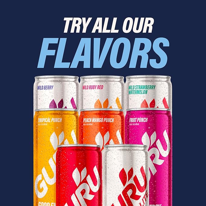 - SPREAD FEEL GOOD ENERGY: Organic energy drinks crafts with plant based ingredients. GURU is about helping you blaze new trails, reach new heights, and find your true nature. Help us share good energy, inspire communities and be a GURU to others!