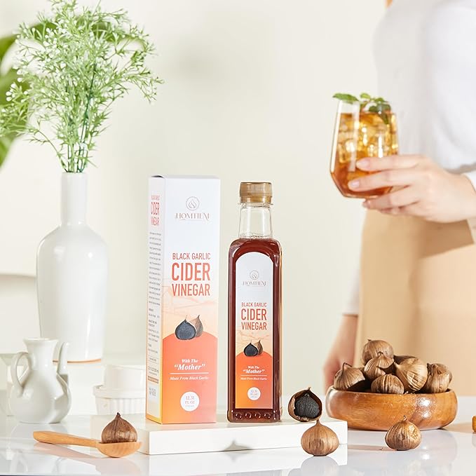 - HOMTIEM BLACK GARLIC CIDER VINEGAR - A naturally fermented vinegar crafted from our healthy Black Garlic, infused with Cider Vinegar to enhance flavors and provide additional health benefits, giving you a boost in overall well-being.