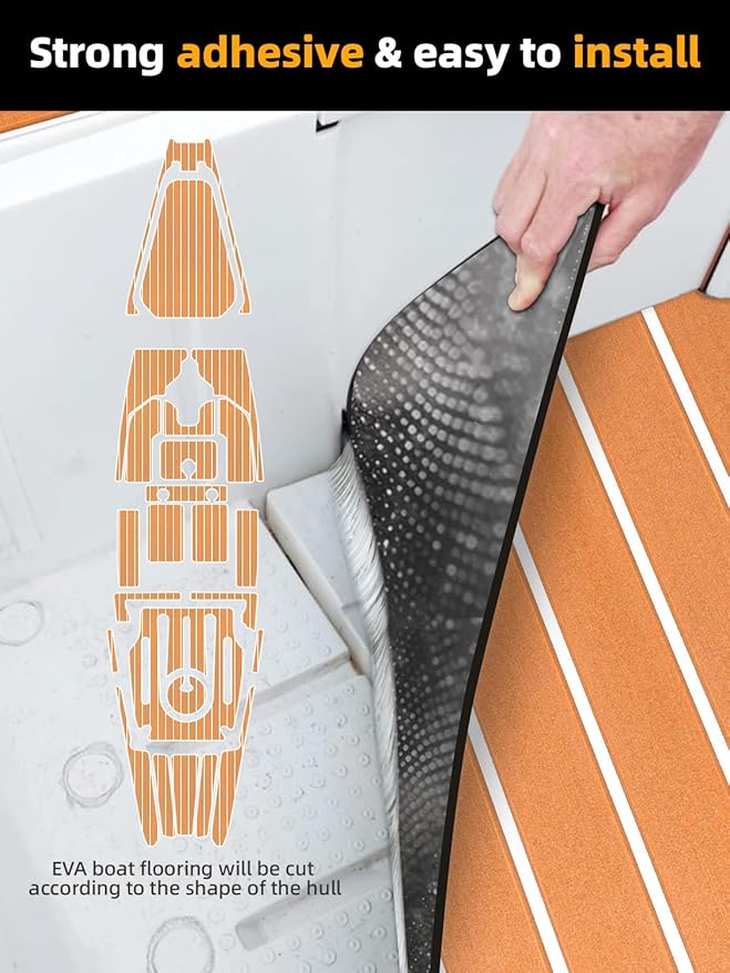 - Easy Installation Boat Flooring- You can use a cutting tool to cut this eva foam boat flooring sheet to any size for installation, with strong glue on the back (please keep the installation site clean). Very easy to cut and hard to fall off after cutting, and it is flat and beautiful. You can enjoy DIY with this marine flooring materials