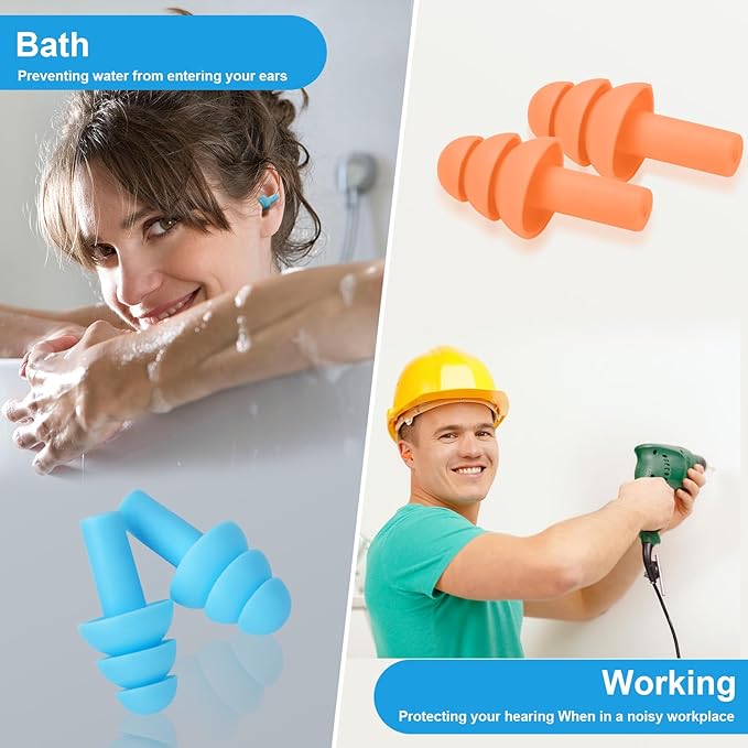 - Triple Protection - 3 layer design improves sealing ability and comfort, effectively reduces noise and has high water resistance. These earplugs are very suitable for sleeping, swimming, shooting, studying, noisy work environments, concerts, motorcycles, traveling by plane and loud events.