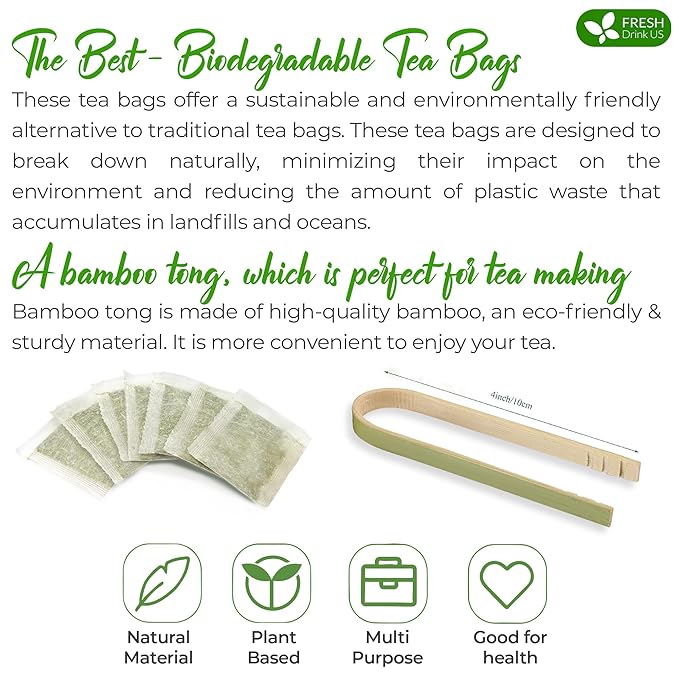 - ☘️ BIODEGRADABLE TEA BAG - NATURAL MATERIAL: The tea bags are made of natural corn fiber, which is friendly for the environment. No Strings. No Wrapped. No Staples. No Adhesive. No Bleach. No Dyes - 100% Safety.