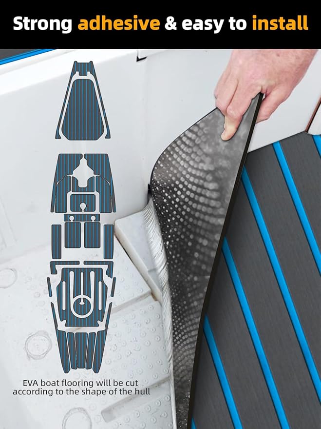 - Easy Installation Boat Flooring- You can use a cutting tool to cut this eva foam boat flooring sheet to any size for installation, with strong glue on the back (please keep the installation site clean). Very easy to cut and hard to fall off after cutting, and it is flat and beautiful. You can enjoy DIY with this marine flooring materials