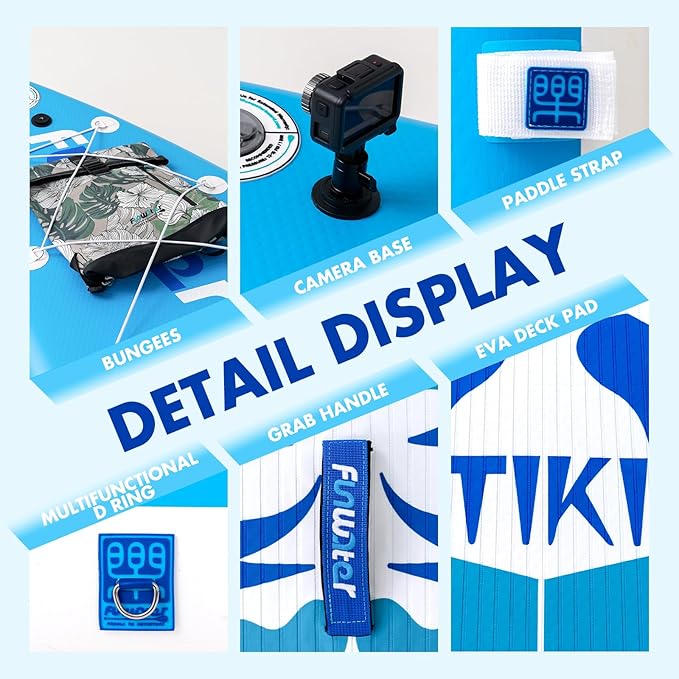 - 【Rich Paddleboard Accessories】Every paddleboard is equipped with manual pump, fins, cell phone waterproof bag, paddleboard backpack, coil foot leash, single paddle, you will get a complete and colorful water experience.