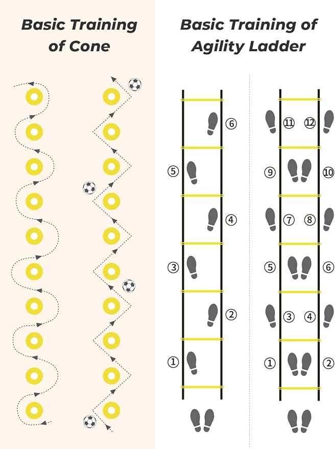 - 20 Feet 12 Rungs Agility Ladder and 12 Cones for Workout:Ideal for beginners and professional athletes,this agility ladder set is a must-have for improving speed,agility,coordination,quickness and overall athletic performance