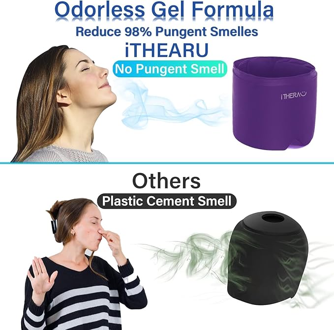 - Updated Odorless Material:Different from other old migraine relief cap, our headache relief hat made with cutting-edge material and expert-grade gel, it's already cool without even frozen. Non-toxic and with no smell, thick solid gel stays cold longer, remains smooth and pliable when frozen, very cozy to wear. Stretchable gel conforms closely to all different head shape, gives tight compression to the head, provides more cold penetration to relieve headache, migraine and tension