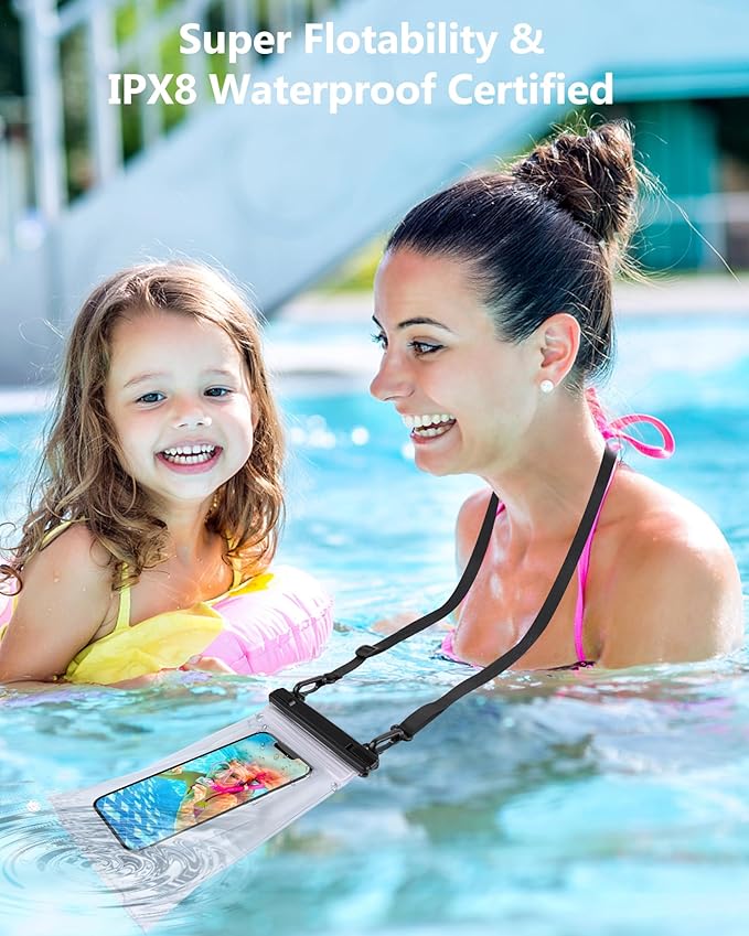 - [10X Floating Ability] The upgraded floating waterproof phone pouch provides 10X floating than ordinary floating waterproof case and can store weighing 500g items, ensuring that your phone and items won't sink even if it falls into the water. Got you covered at the beach, snorkeling, swimming, bathing, skiing, boating, kayaking, rafting trips, music festivals, sporting events, fishing, etc. Don't let the water ruin your fun, let the cell phone dry bag become your vacation and cruising essential!
