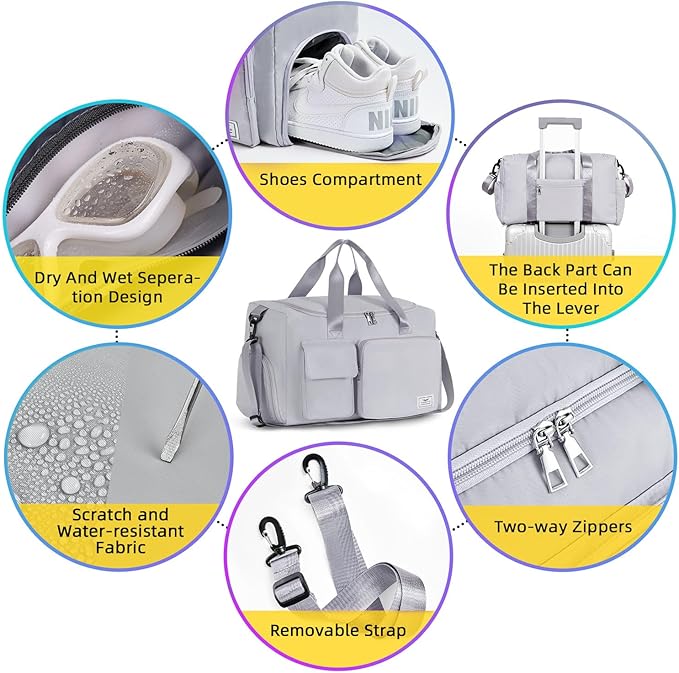 - Wet Pocket & Shoe Compartment: The wet pocket is perfect for storing sweaty clothes or towels after your workout; The shoe compartment allows you to easily store and access your gym shoes without dirtying the main compartment