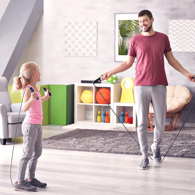 - Durable & Adjustable Rope / / This jump rope is made of steel wires that are coated with strong PVC material, making it durable even after a long time exercising. Its adjustable length design enables you to customize the length according to your needs, making it suitable for everyone, no matter for kids or adults.