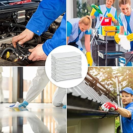 GOLD TEXTILES White Shop Towels Cotton [B Grade Towel] - 60 Pcs 20x40 Inches Shop Rags in a Box - Valuable Cleaning Rags Terry Towel for Industries, Automobiles and Commercial Use (60 Rags)