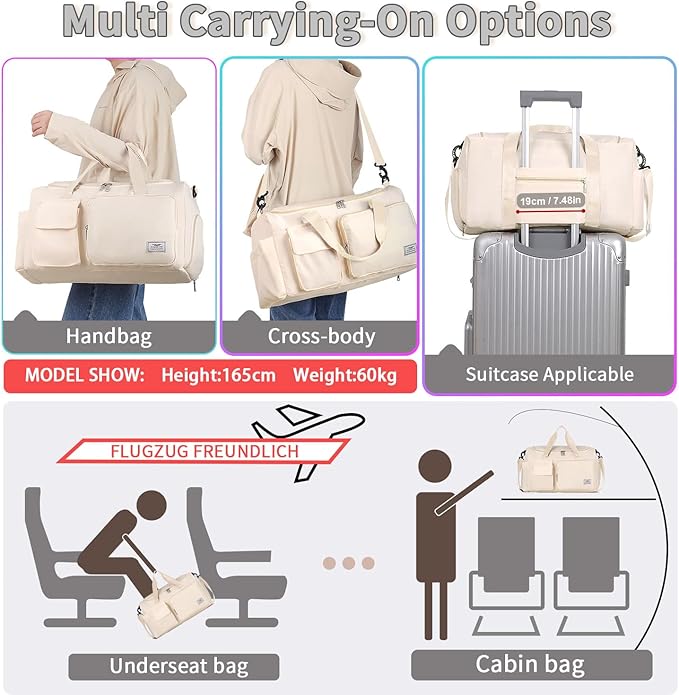 • Airplane-friendly Travel Bag: The size of this travel bag is 18''×11''×11'', ideal as a carry on bag. With additional adjustable shoulder strap & integrated trolley sleeve, the tote bag can be carried with you everywhere, making your travel a breeze