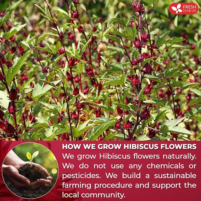 FRESHDRINKUS 115 Hibiscus Flowers Tea Bags, 100 Percent Natural, Pure from Hibiscus Flowers. Loose Flower Hibiscus Herbal Tea. Hibiscus Flower Tea. No Sugar, No Caffeine, No Gluten, Vegan.