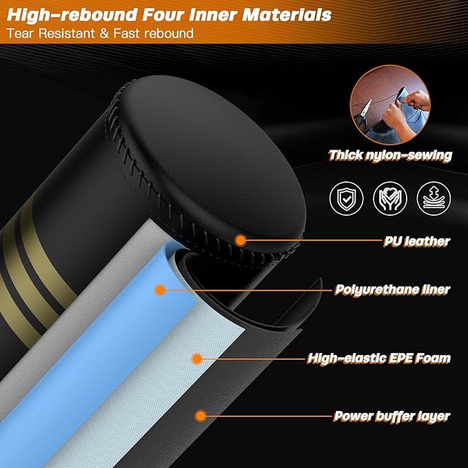 - Quality 4 Inner Materials & Stitching: Features with thick and high-density PU leather, power buffer layer, high elastic EPE Foam and polyurethane liner. Top-filled terylene cotton enhance plumpness, thick nylon-sewing makes every boxing more pleasant